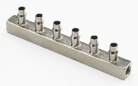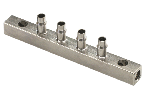 May be mounted on jigs, fixtures or machinery to provide up to 12 convenient #10-32 outlets from one standard 1/8” pipe connection; may be used with any Clippard #10-32 fittings, quick connects and many other devices; unused ports can be plugged with screw plug 11755.